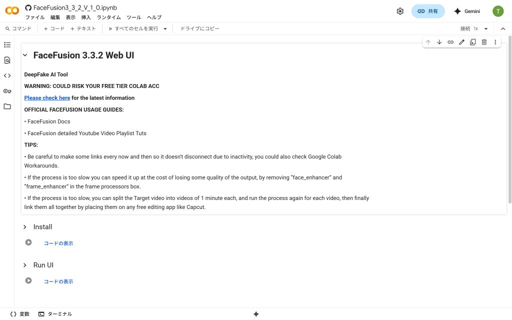 FaceFusion gibt es Code, der in der kostenlosen Version von Colab möglicherweise „unautorisiert“ ist.